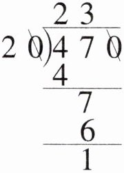 张叔叔采摘了 470 千克脐橙,准备装箱邮寄。每箱装 20 千克,可以装多少箱?还剩多少千克?如下是聪聪列的竖式,根据竖式判断下面的说法正确的是(