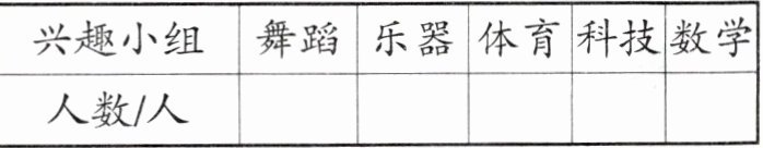 )两个兴趣小组的人数一样多。(2)根据上面的统计图,完成下面的统计表。