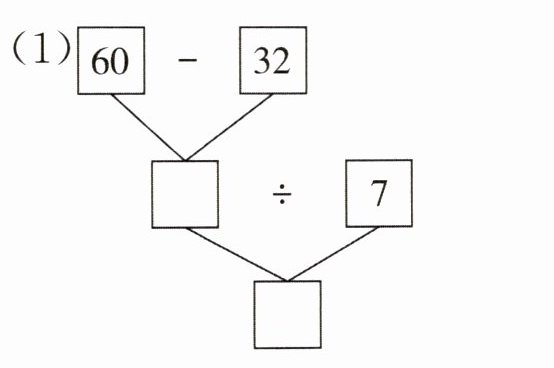 (1) 28 4 (60 - 32) ÷ 7 = 4
