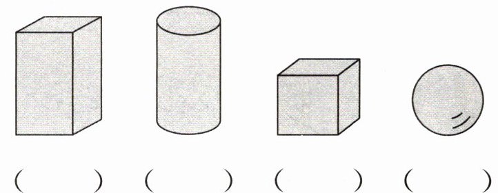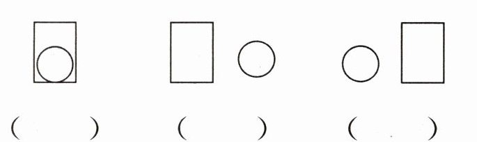2. 从不同的方向看,在能看到$◯$的图形下面的()里画“√”,在能看到$□$的图形下面的()里画“$\triangle$”。