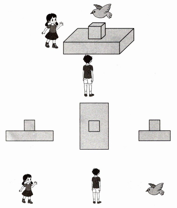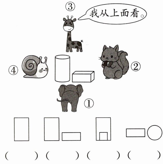 5. 下面四幅图分别是谁看到的?把序号填在( )里。