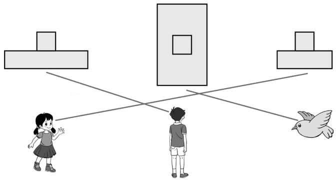 3. 哪幅图是小华看到的?在正确答案下面的()里画“√”。
