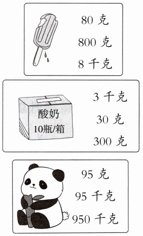 (3)一个鸡蛋约重50克,一袋食盐的质量约4个鸡蛋的质量之和,则一袋食盐约重(