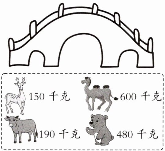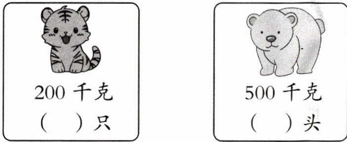 6. 在( )里填上适当的数,使每种动物的总重恰好是1吨。