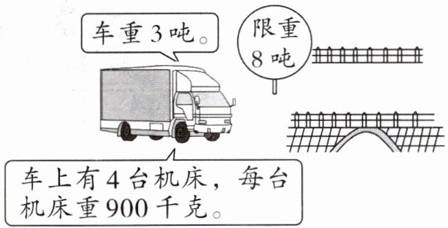 8吨=8000(千克) 3吨=3000(千克) 900+900+900+900+3000=6600(千克) 6600千克<8000千克 没有危险。