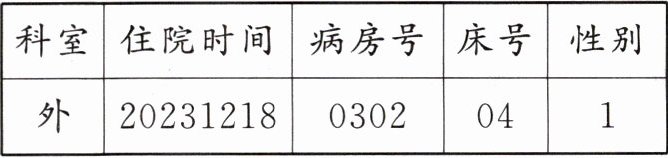 2. 某医院一位患者的住院证编号为“外 202312180302041”,他的住院信息如下表: (“1”代表男性,“2”代表女性)