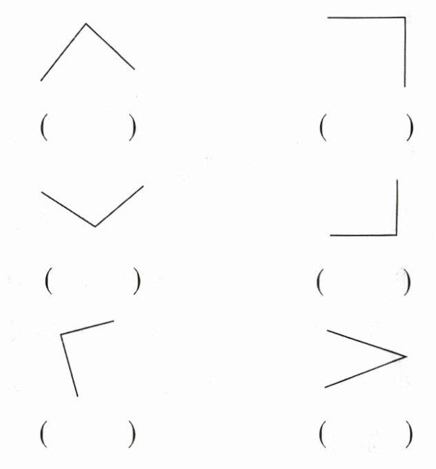 2. 用三角尺比一比,找出直角,并在对应的( )里画“√”。