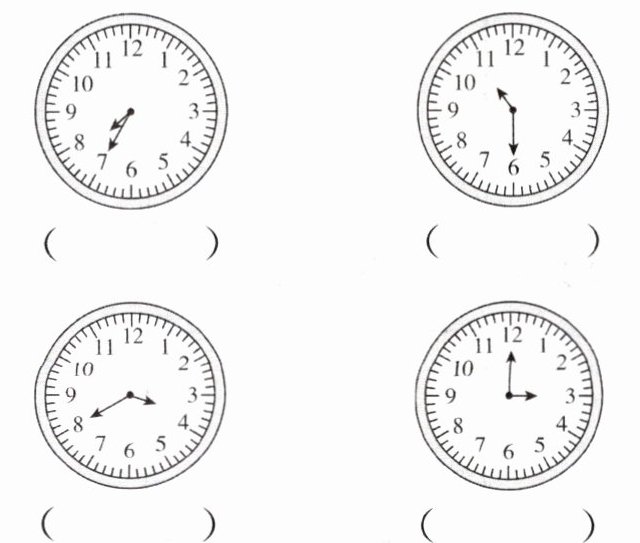 3. 写出钟面上时针和分针形成了什么角。(填“锐角”“直角”或“钝角”)
