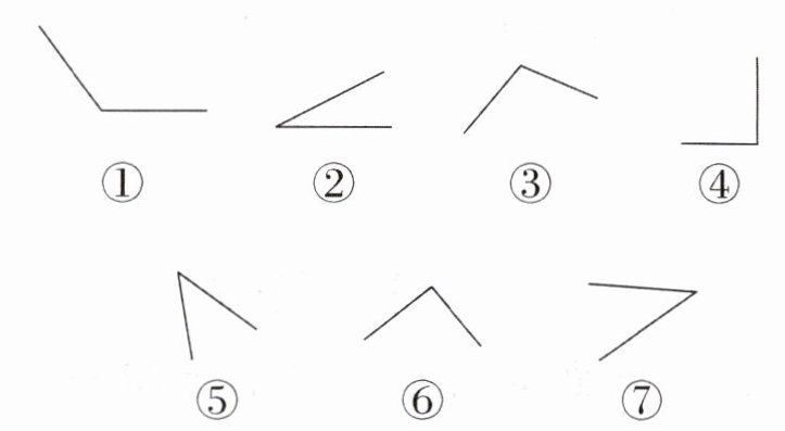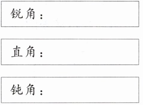5. 在学角时,小东用卡纸做了3个角,却被老鼠把角的顶点部分咬掉了。你能从剩余部分知道小东做的各是什么角吗?在图上表示出你的方法。
