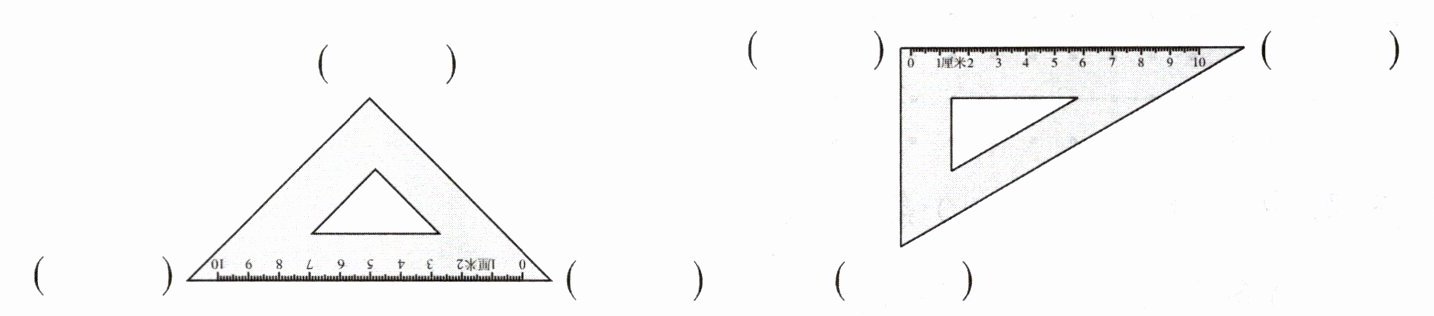 2. 三角尺上的角各是什么角?在下图中填一填。