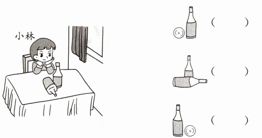 2. 右边哪个图形是小林看到的,在( )里画“√”。