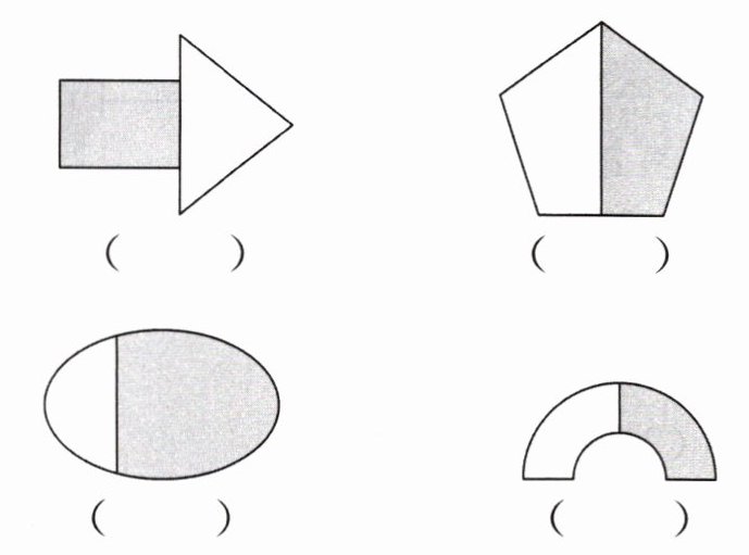 1. 涂色部分都是整个图形的$\frac{1}{2}$吗?是的请画“√”。