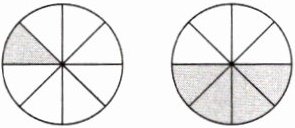 $(\frac{1}{8}) + (\frac{3}{8}) = (\frac{4}{8})$
