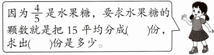 因为$\frac{4}{5}$是水果糖,要求水果糖的颗数就是把 15 平均分成(