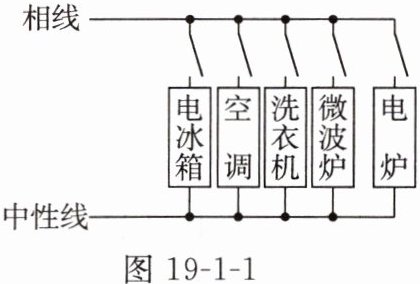 6. 如图19-1-1所示,当所有开关闭合后,输电线因电流过大而燃烧起来,像这种产生电流过大的原因是