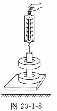16. 如图20-1-8所示,托架上有两个磁环,同名磁极相对,上面的磁环悬浮着,托架静止挂在弹簧测力计的挂钩上,若托架重1N,每个磁环重2N,则弹簧测力计的示数为(
