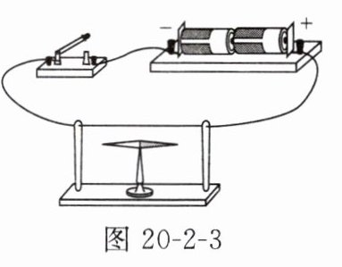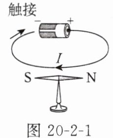 4. 如图20-2-1所示,使导线与电池触接,电路连通的瞬间磁针发生偏转。这一现象不仅能说明通电导线周围存在