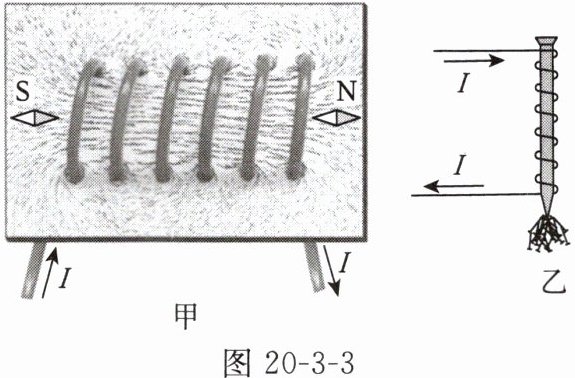 6. 如图 20 - 3 - 3 所示,用甲装置探究通电螺线管外部的磁场分布,用乙装置探究电磁铁磁性强弱跟哪些因素有关。下列说法正确的是(