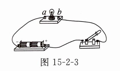 6. 如图15-2-3所示,闭合开关后,小灯泡发光,小灯泡中电流的方向是
