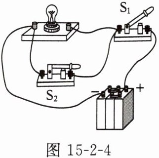 7. 如图15-2-4所示的电路中,开关$S_2$闭合。当开关$S_1$断开时,电路是