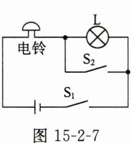 13. 如图15-2-7所示,当$S_1$和$S_2$都闭合后,电铃
