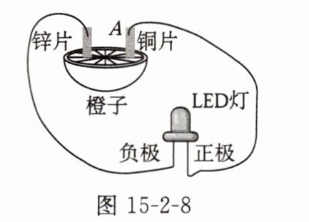 14. 如图15-2-8所示,水果电池点亮了发光二极管,是由于电荷的