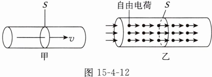 (3)如图15-4-12乙所示,已知金属导体的横截面积为S,导体中单位体积内的自由电荷数为n,每个自由电荷的电荷量为q,自由电荷定向移动的速度为υ,请你仿照(1),推导出电流I的表达式,I=