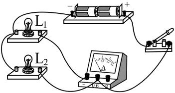 。在闭合开关后,如果电流表$A_1$示数为0.5 A,电流表$A_2$示数为0.3 A,则通过小灯泡$L_1$的电流是0.2
