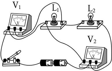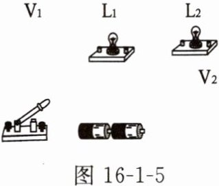 11. 将图16-1-5中两灯串联,要求电压表$V_1$只测$L_1$两端的电压$,V_2$测$L_1、$$L_2$两端的总电压。