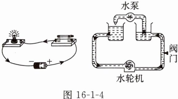10. 如图16-1-4所示,电路与水路有许多相似之处,关于电路和水路,下列说法中(