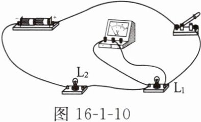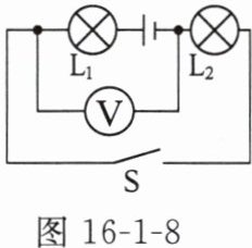 14. 如图16-1-8所示,电源电压是3V且保持不变,S闭合后,电压表示数为1V,则灯$L_2$两端的电压为