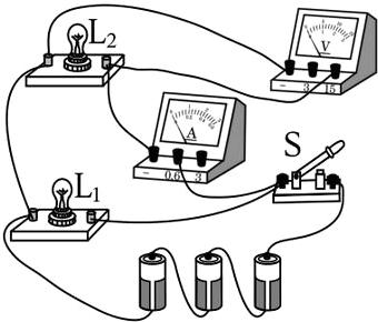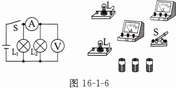 12. 请根据图16-1-6中的电路图,用笔画线代替导线把实物元件连接起来。注意:实物图导线不得交叉,电流表选择较小测量范围。