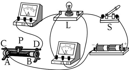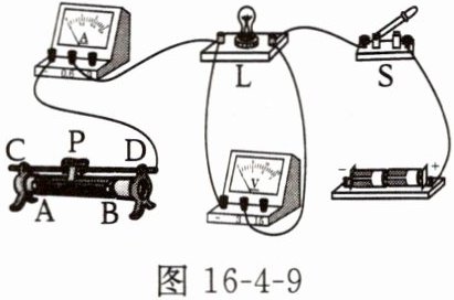 (1)为了探究上述问题,老师要求向右移动滑动变阻器的滑片时能使灯 L 变暗,请用笔画线代替导线连接图 16-4-9 中的实物。