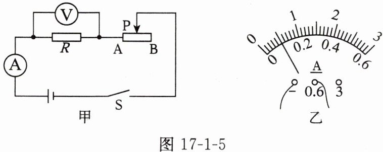 (4)某次实验中,电流表指针偏转如图17-1-5乙所示,示数为