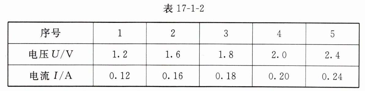 (5)实验测出五组数据记录在表17-1-2中,为了找到电阻一定时,电流与电压的关系,处理数据的方式为