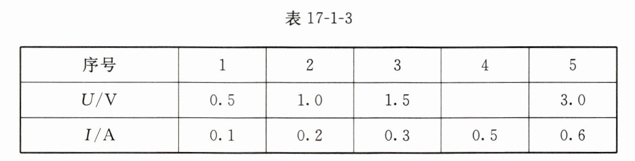 $A$。(5)实验测出五组数据记录在表17-1-2中,为了找到电阻一定时,电流与电压的关系,处理数据的方式为
