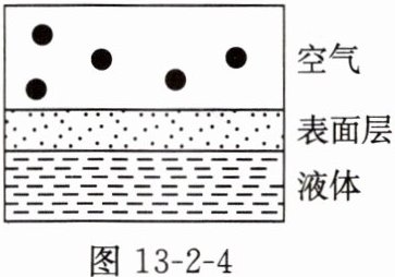 。液体和空气接触的表面存在一个薄层——表面层,如图13-2-4所示,由于液体分子做无规则运动,表面层就存在一些具有较大能量的分子,它们可以克服分子间相互作用的引力