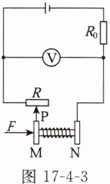 8. 图17-4-3是一款电子握力计的电路原理图,$M$、$N$均为金属板,$N$固定不动,当握力$F$增大时,下列判断正确的是(