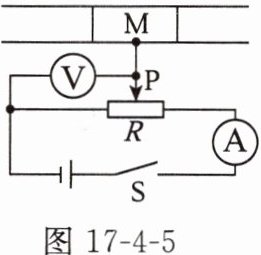10. 计算机鼠标内装有自动控制传感器,其工作原理电路如图17-4-5所示。物体$M$在导轨上左右移动时,可带动与之相连的滑动变阻器滑片$P$左右移动,电压表示数的变化可反映出物体$M$移动的距离。当物体$M$向右移动时,下列选项正确的是(