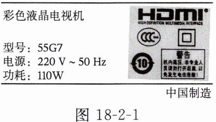 5. 某彩色电视机的铭牌如图18-2-1所示,其额定电功率为
