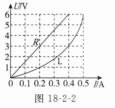 6. 图18-2-2为灯泡L和定值电阻R的U-I图像,若将L和R并联在电源电压为$6V$的电路中,则整个电路的总电流为