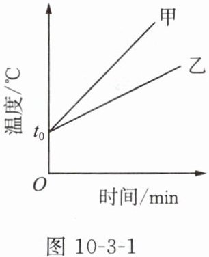 3. 在两个相同的容器中分别装入质量相同的甲、乙两种液体,使用相同的热源对它们进行加热,两种液体的温度与加热时间的关系如图10-3-1所示。若甲、乙两种液体吸收相同的热量,则
