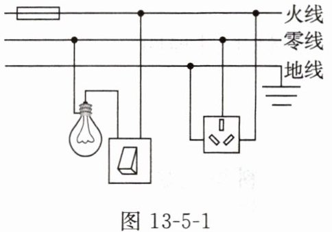 6. 图 13 - 5 - 1 是小明设计的部分家庭电路,下列说法正确的是(