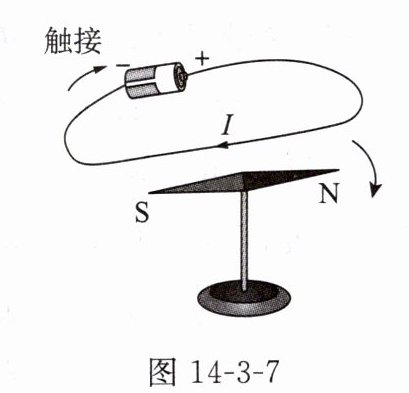 2. 如图14-3-7所示,桌面上有一枚能自由灵活转动的小磁针,静止时,小磁针
