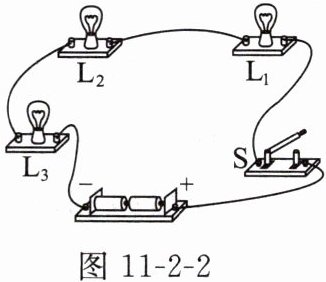 2. 在连接串联电路时,小明将三个小灯泡串联起来,如图 11 - 2 - 2 所示。在接通电源后灯泡 $ L_{2} $ 的灯丝断了,电路的其他部分完好,则(