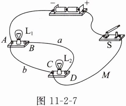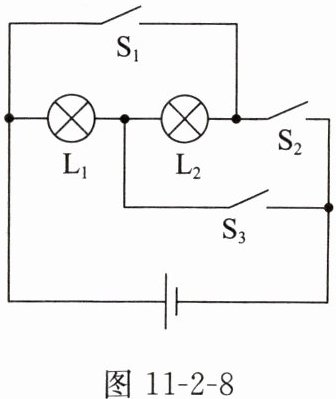7. 如图 11 - 2 - 8 所示,要使灯 $ L_{1} $ 和 $ L_{2} $ 串联在电路中,应闭合开关