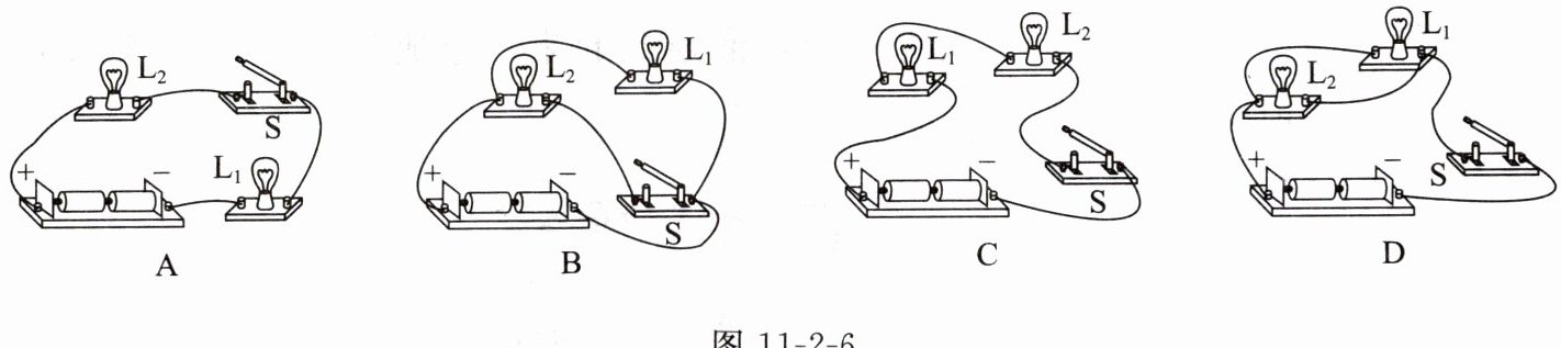 3. 如图 11 - 2 - 6 所示的电路中,开关控制两个灯泡且属于并联电路的是(