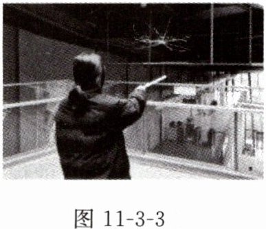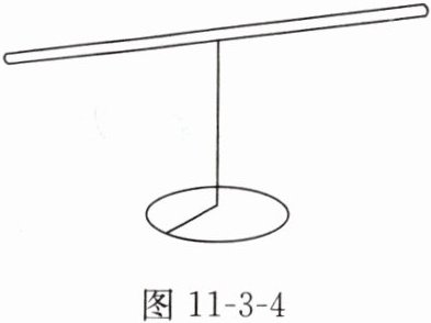 6. 用一段细铁丝做一个支架作为转动轴,把一根中间戳有小孔(没有戳穿)的塑料吸管放在转动轴上,吸管能在水平面内自由转动,如图 11 - 3 - 4 所示。用餐巾纸摩擦吸管使其带电。