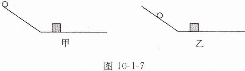 7. 小明通过如图 10 - 1 - 7 所示的实验研究物体动能的大小与运动速度是否有关。