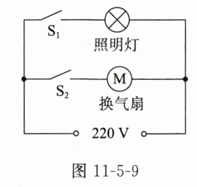 6. 小明家的卫生间装有照明灯和换气扇,其简化电路图如图11 - 5 - 9所示。下列说法正确的是(
